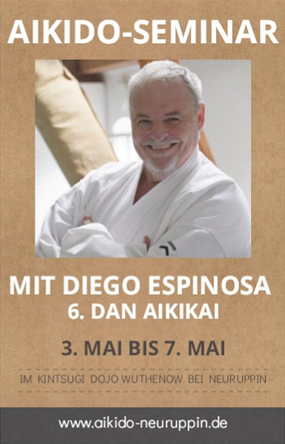 Wir freuen uns sehr, dass unser lieber Freund und Lehrer Diego Espinosa (6. Dan Aikikai) vom Centro Aikido Mallorca (CAM) auch in diesem Jahr zugesagt hat, für einen Aikido-Lehrgang zu uns den Neuruppiner Ortsteil Wuthenow zu kommen.